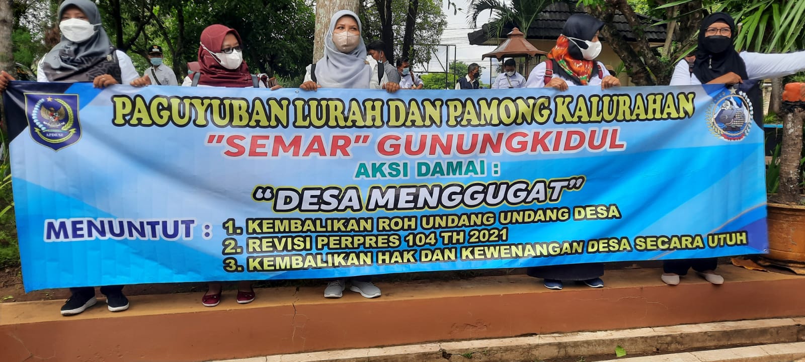 Gunungkidul (Gugat.id)_// Paguyuban Lurah dan pamong seluruh Gunungkidul menyampaikan aspirasi terkait Perpres no 104 Tahun 2021 di gedung DPRD Kabupten Gunungkidul Rabu, (15/12).