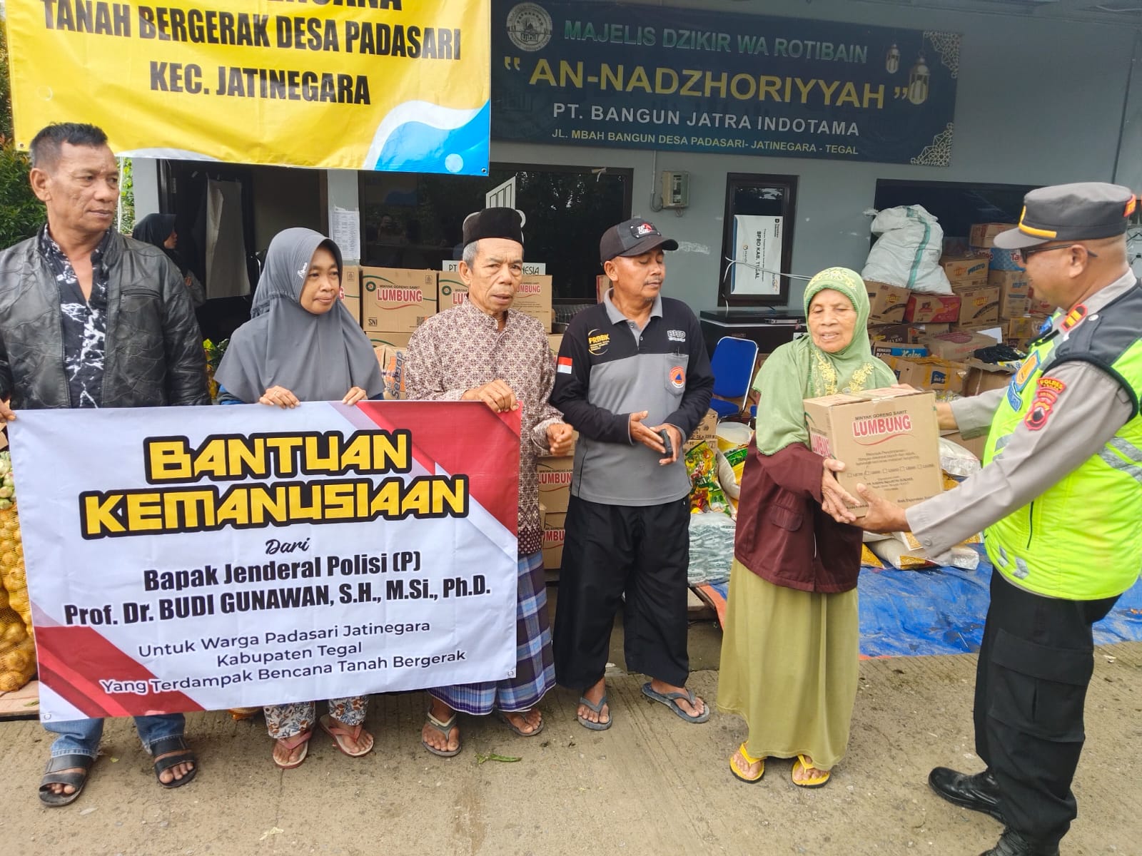 Tegal, Gugat.id – Kepedulian terhadap warga terdampak bencana tanah bergerak di Desa Padasari, Kecamatan Jatinegara, Kabupaten Tegal terus mengalir dari berbagai pihak. Pada Minggu (8/3/2026) pukul 10.30 WIB hingga 13.00 WIB, bantuan kemanusiaan dari Purnawirawan Jenderal Polisi Prof. Dr. Budi Gunawan, S.H., M.Si., Ph.D. disalurkan kepada para pengungsi melalui Polsek Jatinegara.