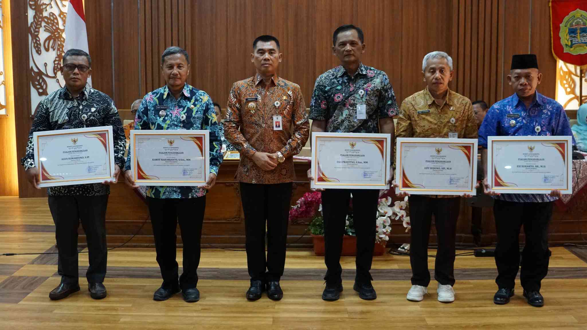 Selain membahas audit BPK, dalam kesempatan ini Bupati Gunungkidul juga memberikan penghargaan kepada seluruh kepala OPD dan Panewu se-Gunungkidul. Penghargaan ini diberikan sebagai bentuk apresiasi atas dedikasi dan kontribusi mereka dalam mendukung penyelenggaraan pemerintahan dan pembangunan selama empat tahun terakhir.
