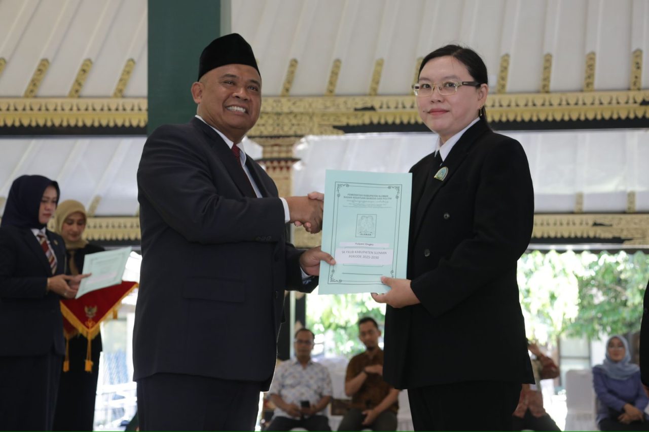 SLEMAN, gugat.id – Bupati Sleman Harda Kiswaya resmi mengukuhkan pengurus Forum Kerukunan Umat Beragama (FKUB) Kabupaten Sleman periode 2025-2030 di Pendopo Parasamya, Selasa (2/9). Prosesi pengukuhan ditandai dengan pembacaan naskah dan penyerahan Surat Keputusan (SK) kepada 22 pengurus FKUB Sleman.