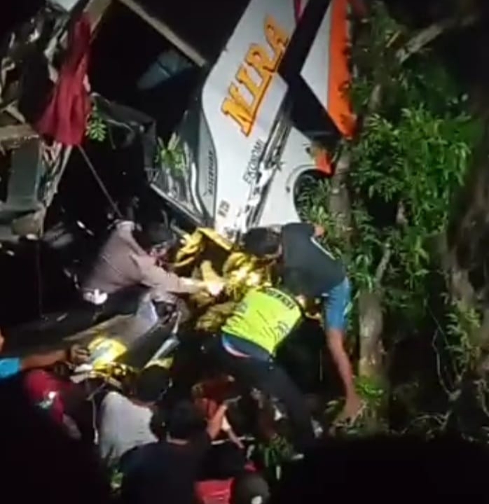 NGAWI, gugat.id – Sebuah bus bertrayek antar kota antar provinsi (AKAP), PO. Mira jurusan Surabaya – Jogjakarta mengalami kecelakaan di Ngawi, Jawa Timur, Jumat petang (23/8/2024). Data sementara menyebutkan, sang kernet bus tewas seketika sedangkan puluhan penumpanya mengalami luka-luka.