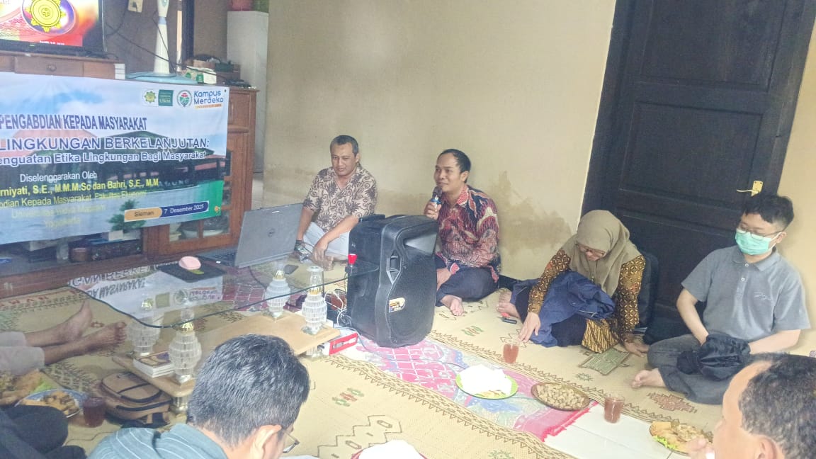 SLEMAN, gugat.id — Dosen Fakultas Ekonomi (FE) Universitas Widya Mataram (UWM) sukses menyelenggarakan kegiatan Pengabdian kepada Masyarakat (PkM) di Dusun Kruwet, Kalurahan Sumberagung, Kapanewon Moyudan, Sleman pada Minggu (7/12/25). PkM kali ini mengangkat tema mengenai Etika dan Kesadaran dalam Pembangunan Lingkungan Berkelanjutan, dengan fokus utama pada penguatan komitmen masyarakat dan pemanfaatan potensi ekonomi lokal berbasis lingkungan.