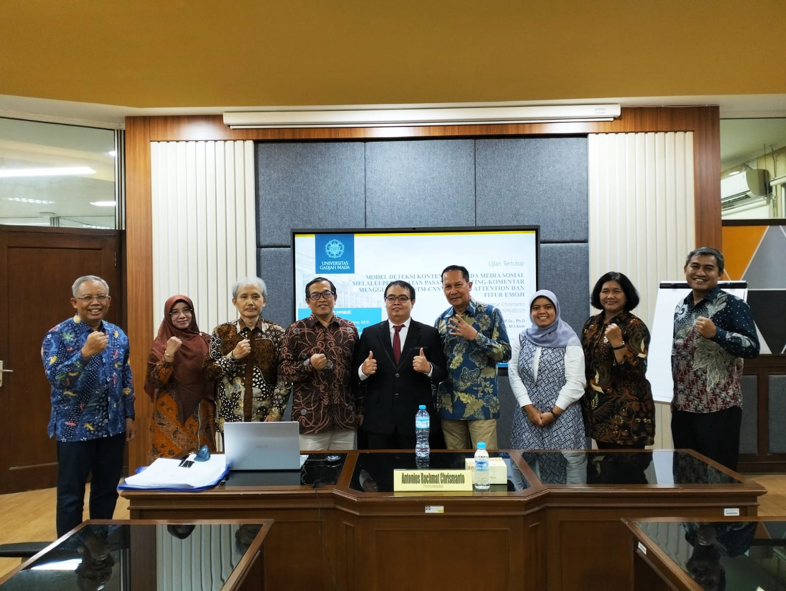Dalam disertasinya yang berjudul “Model Deteksi Konten Spam pada Media Sosial Melalui Pendekatan Pasangan Posting-Komentar Menggunakan LSTM-CNN Berbasis Attention dan Fitur Emoji”, Anton membuat model pembelajaran mendalam (deep learning) untuk mendeteksi komentar spam pada media sosial di Indonesia. Kebaruan yang ditawarkan dalam model tersebut adalah penggunaan posting dan komentar sebagai pasangan data dalam proses pelatihan sistemnya.