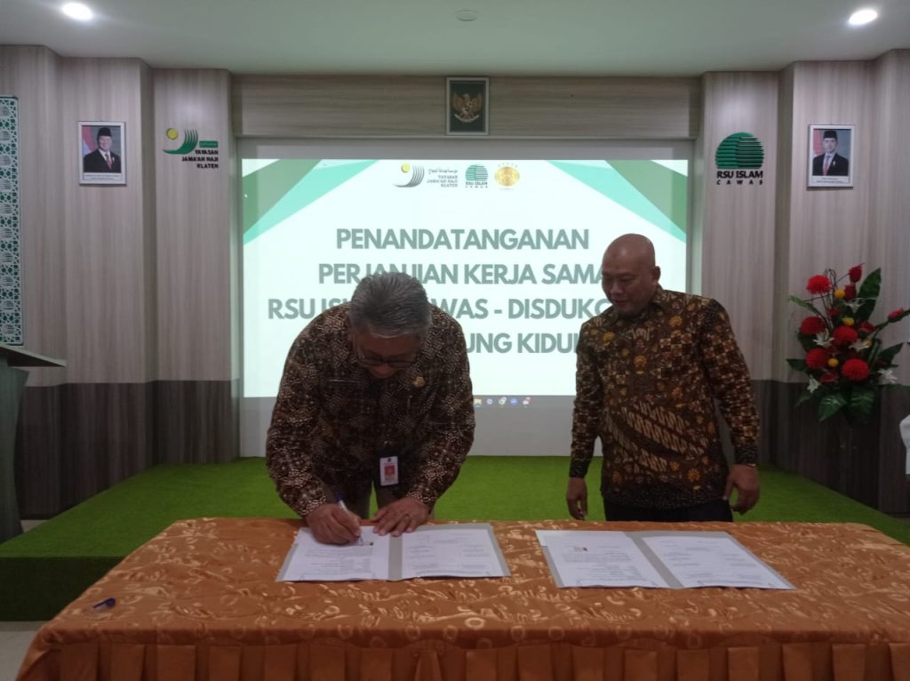 Kerja sama ini resmi ditandai dengan penandatanganan perjanjian antara Kepala Dinas Dukcapil Gunungkidul, Markus Tri Munarja, S.IP, M.Si., dan Direktur RSU Islam Cawas, dr. Syaiful Huda, yang berlangsung di aula rapat RSU Islam Cawas.