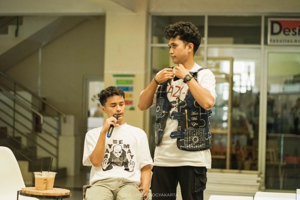 Selain berbagi pengalaman mengenai proses mendirikan usaha, Jonathan Rainer (Prodi Pendidikan Bahasa Inggris) dan I Made Krisna Mahardika (Prodi Manajemen) selaku Founder Maybemay juga mengenalkan salah satu produk mereka berupa ‘Tote Bag to Vest’. Produk ini merupakan inovasi tote bag berbahan denim yang mereka buat untuk mengurangi limbah tekstil. “Pembuatan tote bag ini lebih mengedepankan kualitas, sehingga kami masih memproduksi dalam jumlah terbatas,” terang I Made Krisna Mahardika.