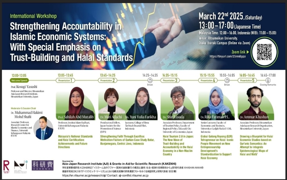YOGYAKARTA, gugat.id – Kerja sama antara Indonesia, Jepang, dan Malaysia dalam pengembangan ekonomi halal semakin menguat melalui model Global Gotong Royong (G2R) Tetrapreneur. Sebuah pendekatan khas Indonesia yang mengusung semangat kebersamaan dan keberkahan dalam kewirausahaan, diperkenalkan ke forum internasional pada Maret 2025 dalam rangkaian workshop yang diselenggarakan oleh Asia-Japan Research Institute (AJI) Ritsumeikan University dan Grants-in-Aid for Scientific Research (KAKENHI).