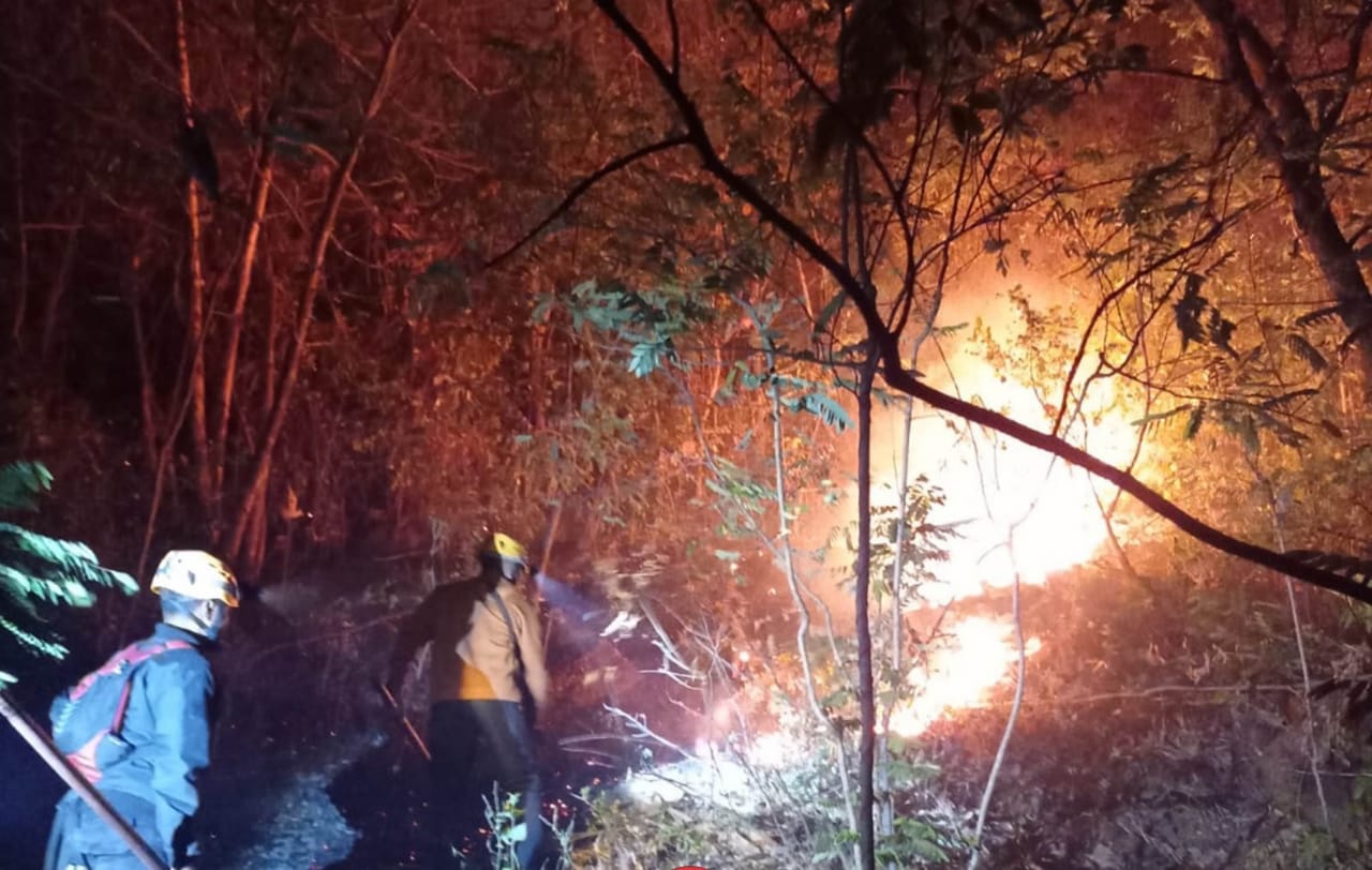 MAGETAN, gugat.id – Sedikitnya 2 hektar hutan jati dan lahan masyarakat di area Gunung Bancak, di Desa Giripurno, Kecamatan Kawedanan, Magetan, Jawa Timur, terbakar hebat, Jumat malam (13/9/2024).