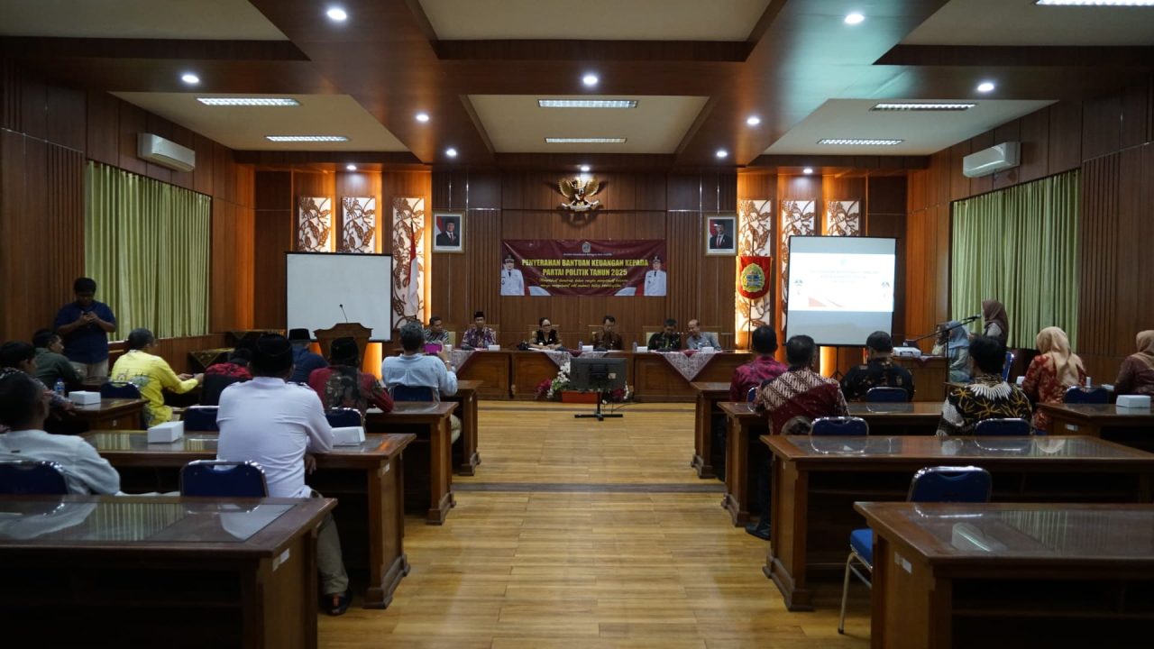 GUNUNGKIDUL, gugat.id – Pemerintah Daerah Kabupaten Gunungkidul melalui Badan Kesatuan Bangsa dan Politik (Kesbangpol) menyerahkan bantuan keuangan senilai Rp 1,1 miliar kepada perwakilan partai politik di wilayah setempat. Penyerahan dilakukan langsung oleh Bupati Gunungkidul, Endah Subekti Kuntariningsih di Ruang Handayani, Kantor Sekretariat Daerah Kabupaten Gunungkidul, Jumat (23/5/2025).