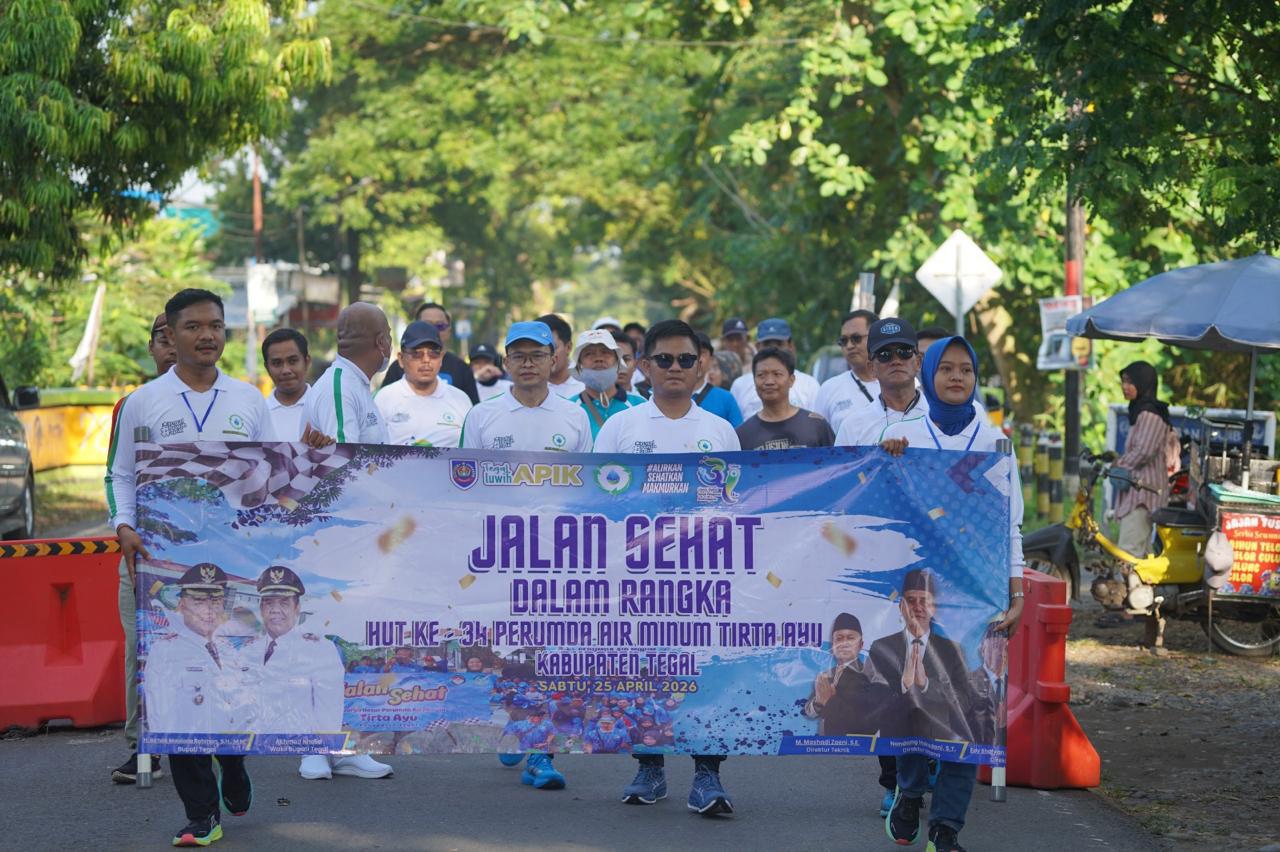 Pernyataan tersebut disampaikan di sela kegiatan peringatan HUT yang berlangsung meriah di Slawi, Sabtu (25/4/2026), yang juga diramaikan dengan jalan sehat bersama pegawai dan masyarakat.