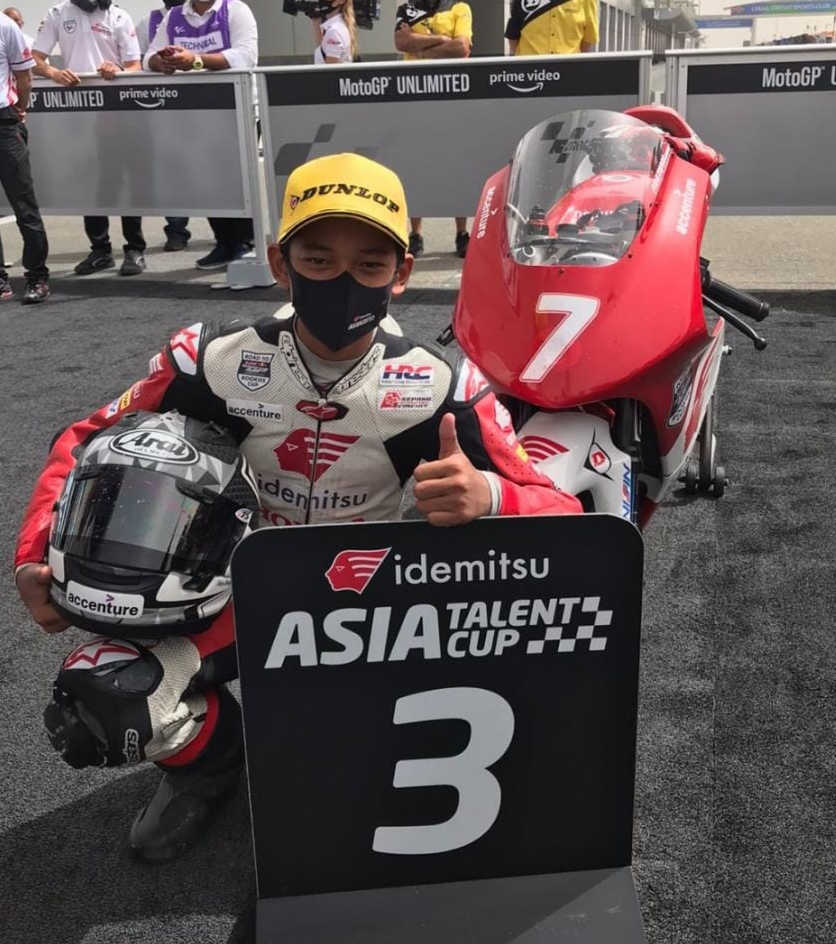 GUGAT ID, – Pembalap Junior Indonesia binaan PT. Astra Honda Motor (AHM) Veda Ega Pratama (13) sukses mengibarkan bendera merah Putih setelah berhasil merebut podium 3 di Race 2 balap junior Idemitsu Asia Talent Cup di Sirkuit Internasional Losail, Qatar, pada hari Minggu (06/03/2022).