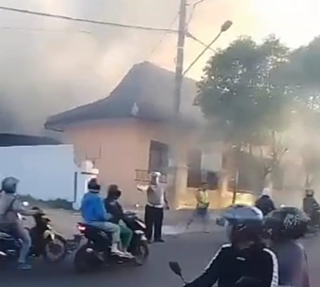 Nyala api kebakaran baru berhasil disudahi amukannya, setelah tiga unit Damkar Pemkab Magetan berikut pasukannya merapat ke lokasi kebakaran. Aksi sigap pasukan khusus ‘pemukul’ api itu, langsung menyapu kobaran api di berbagai sudut gedung yang terbakar.