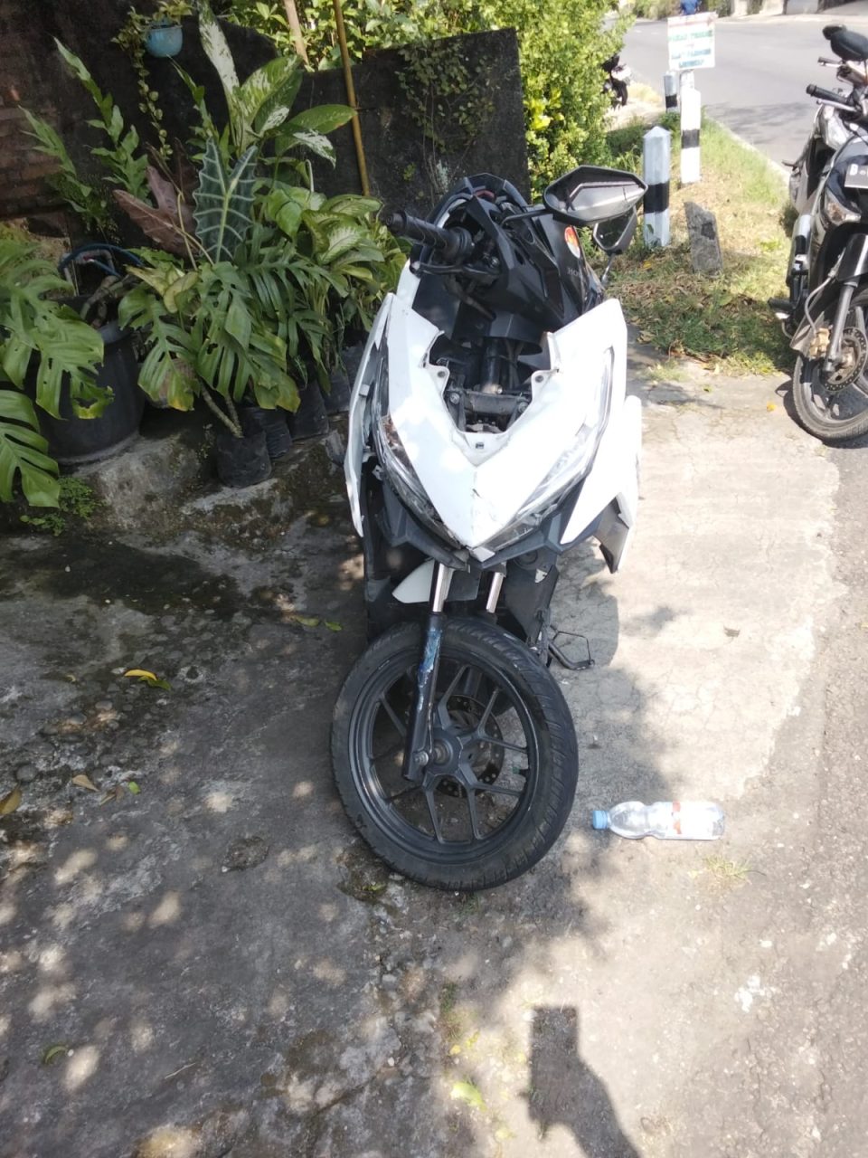 Di waktu yang hampir bersamaan, dari arah berlawanan, yakni dari utara (Ngawen), melaju sepeda motor Honda Vario bernomor polisi AD-4532-AEC yang dikendarai oleh Meilina Dika Caroline (18), remaja asal Cawas, Klaten. Diduga karena jarak yang terlalu dekat dan kedua pengemudi tidak mampu menguasai laju kendaraannya, tabrakan pun tak terhindarkan.