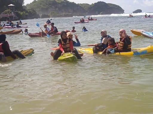Tak dapat dimungkiri, Pantai Drini selalu menawarkan nuansa baru, baik dari segi fasilitas maupun layanan yang diberikan. Salah satu fasilitas unggulannya yang tidak dimiliki pantai lain adalah wahana bermain air untuk anak-anak, dengan adanya perahu kano.