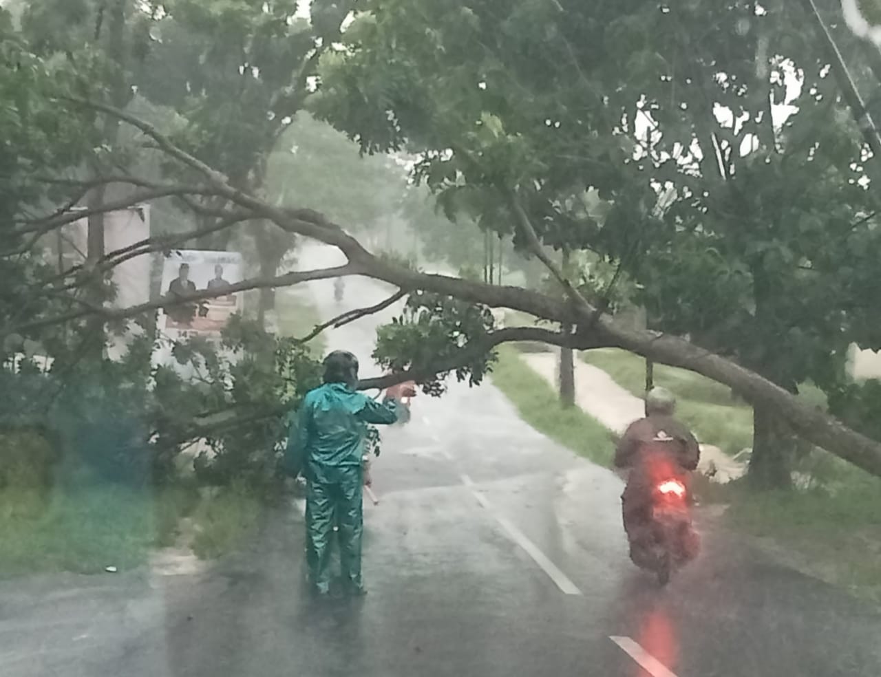 “Benar ada pohon tumbang. Tadi dicek perangkat desa kami. Tidak ada korban jiwa atau terluka. Batang pohon sudah disingkirkan. Dan sekarang lalu lintas lancar lagi,” terang Lanjar Karni, kepada jurnalis.