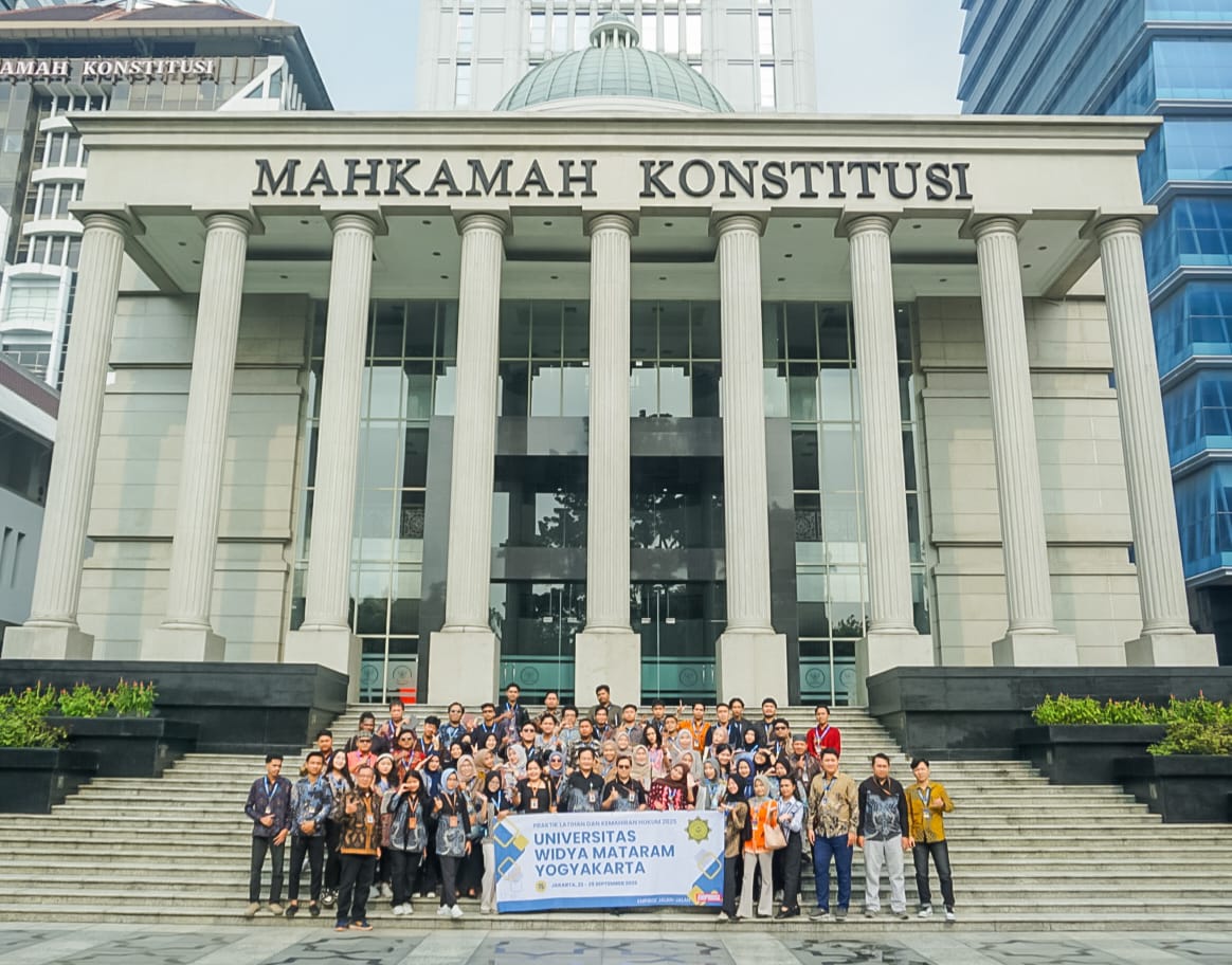 Yogyakarta, gugat.id- Fakultas Hukum Universitas Widya Mataram (FH UWM) menggelar kegiatan Praktik Latihan Kemahiran Hukum (PLKH) di Mahkamah Konstitusi Republik Indonesia pada Selasa (23/9). Kegiatan ini menjadi salah satu agenda penting dalam rangkaian pembelajaran mahasiswa, khususnya untuk memperkuat pemahaman praktis mengenai lembaga peradilan konstitusi di Indonesia. Turut serta dalam kegiatan ini Wakil Rektor III UWM Dr Roni Sulistyanto Luhukay SH MH, Dekan FH Dr Hartanto SE SH MH, Wakil Dekan I FH Bagus Anwar Hidayatullah SH MSc MH.