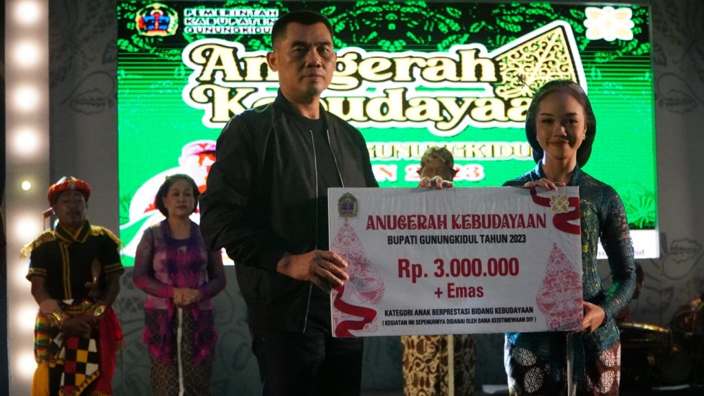 Penerima Anugerah Kebudayaan Bupati Gunungkidul Tahun 2023 kategori Dewasa diantaranya Budi Suwito (Sukiyo) Pelestari seni, bidang seni pertunjukan (reog). Sandyo, S.SnPelestari seni, bidang seni musik (karawitan). Puji Lestari .Pelestari seni, bidang seni rupa.