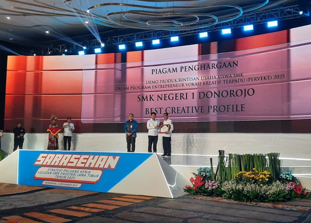 Penganugerahan awards sebagai bukti integritas keilmuan yang mumpuni para siswa itu berlangsung di salah satu hotel di Surabaya, Rabu (03/12/2025). Penerimaan penghargaan berupa piala dan sejumlah tanda mata, diwakili Kepala SMKN 1 Donorojo, Achmad Syaifudin, didampingi guru terkait dan sejumlah perwakilan siswa yang turut berjuang di dalamnya.