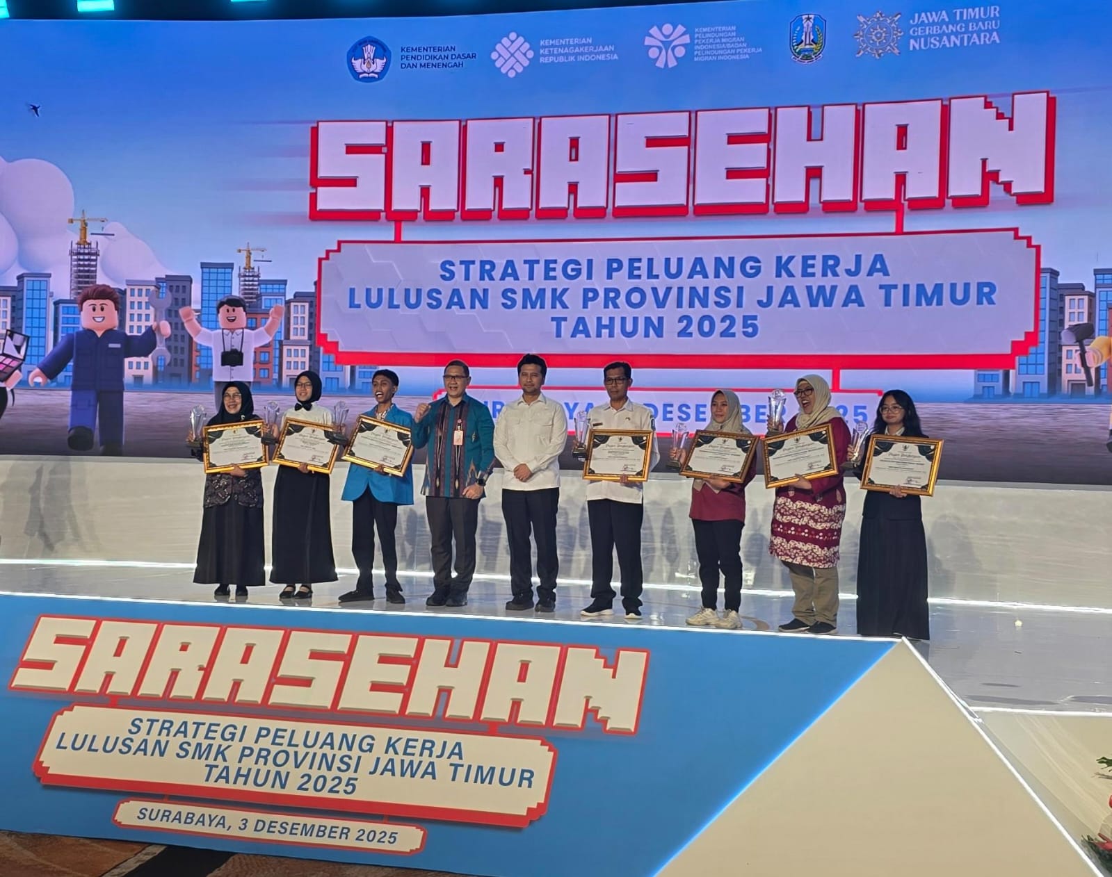 Di ajang adu tangguh vokasi yang digelar Dinas Pendidikan Provinsi Jawa Timur bekerjasama dengan Institut Teknologi 10 Nopember Surabaya (ITS) itu, sekolah menengah yang dipimpin Achmad Syaifudin, S.Pd., M.Pd., ini keluar sebagai pemenang berkategori Best Creative Profile Pervekt SMK 2025.