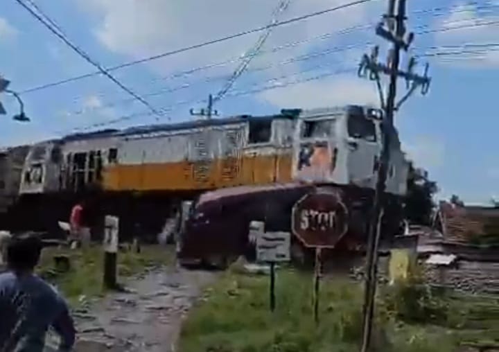 Beruntung para penumpang lekas menghambur keluar mobil untuk menyelamatkan diri, sebelum minibus butut tumpangannya dihajar si naga besi.