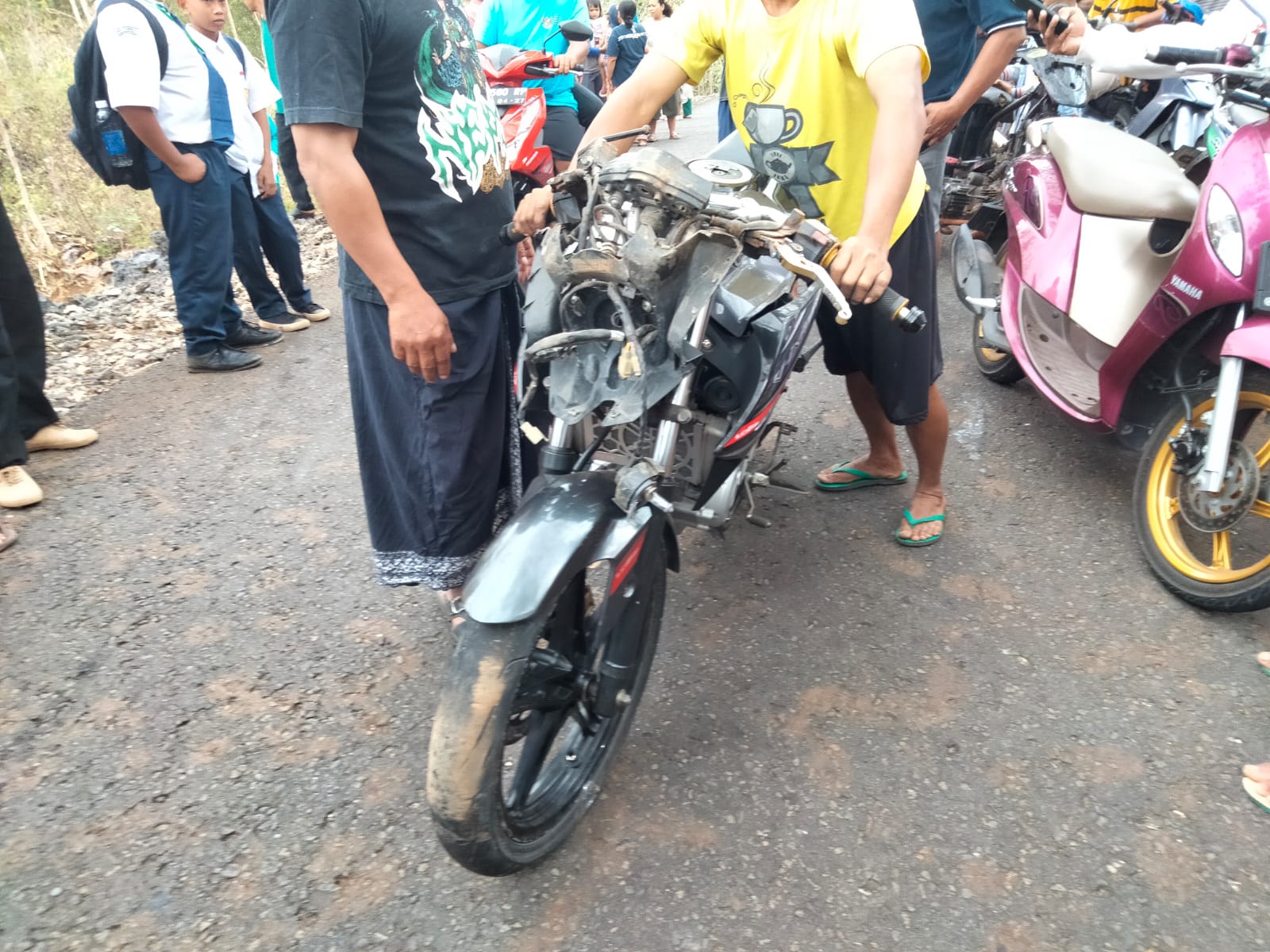Andrian Satria Aji Nugraha (20) warga Dilem, Rt 001/004, Gebangharjo, Pracimantoro, Wonogiri yang mengendarai Sepeda motor Yamaha Vixion dengan Nomor Polisi AD-2717-WI ini, mengalami luka cidera kepala ringan, wajah luka, belum sadar dan masih dirawat di RSUD Wonosari akibat kecelakaan yang dialaminya