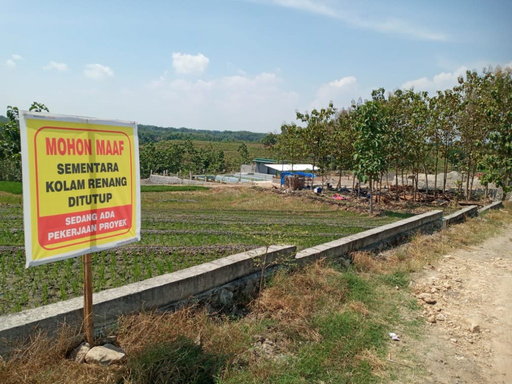Untuk kepentingan kelancaran selama pengerjaan proyek, pemerintah desa setempat memasang rambu pemberitahuan, terkait penutupan sementara operasional kolam renang. Pemberitahuan itu dipasang di tepi jalan masuk, sekitar 500 meter sebelum lokasi objek wisata terpadu itu.