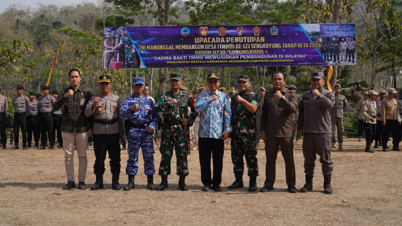 GUNUNGKIDUL, gugat.id – Penutupan TMMD Sengkuyung Ke 121 Tahap III TA 2024 “Darma Bakti TMMD Mewujudkan Pembangunan di Wilayah” di Kalurahan Mertelu, Kapanewon Gedangsari, Rabu (22/8/2024).