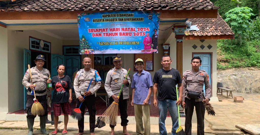 Gunungkidul, gugat.id – Dalam semangat mempererat kerukunan antar umat beragama, Polsek Gedangsari melaksanakan kegiatan bakti religi dan kerja bakti di tiga gereja yang berada di wilayah hukumnya. Kegiatan yang dimulai pukul 07.30 WIB ini dipimpin langsung oleh Kapolsek Gedangsari, AKP Suryanto, S.Pd., bersama lima anggota lainnya.