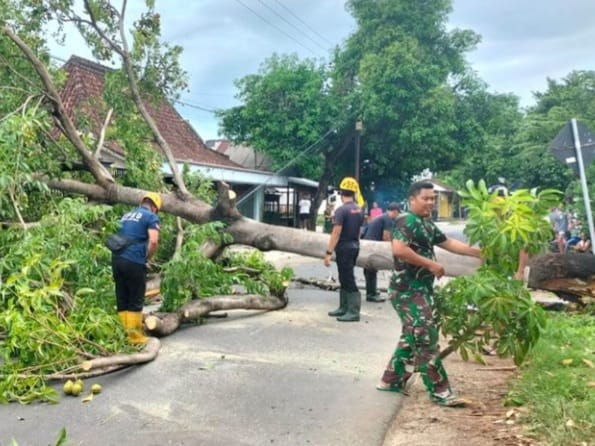 Penanganan yang sama juga dilakukan petugas kebencanaan di wilayah Kabupaten Ponorogo. Dua titik kejadian pohon tumbang sudah berhasil diatasi.