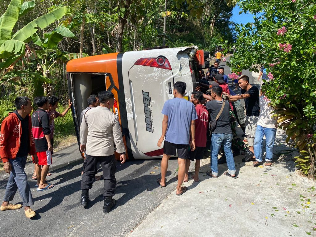 Gunungkidul, gugat.id – Microbus yang membawa rombongan wisatawan Jawa Timur terguling di Jl. Pantai Ngobaran-Nguyaham tepatnya di Dusun Mendak, Rt.05/03, Kalurahan Kanigoro, Kapanewon Saptosari, Kabupaten Gunungkidul, hari ini Kamis (01/06/2023).