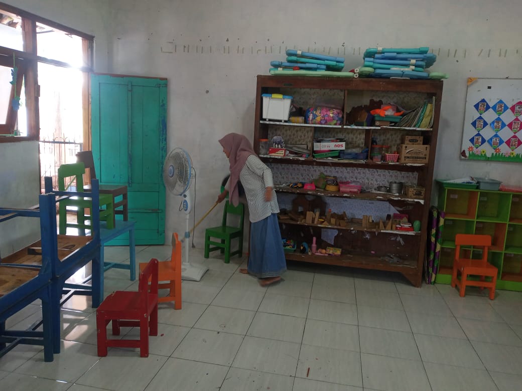 Dikatakannya, awalnya dia bersama guru yang lain bermaksud membersihkan bangkai tikus yang tergeletak di lantai ruang itu. Setelah bangkai teratasi, mereka sekaligus membersihkan ruang dan menata inventarisnya.