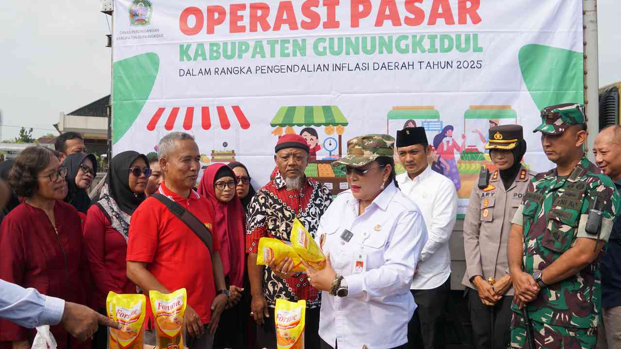Sebagai langkah menjaga stabilitas harga, TPID DIY bersama Dinas Perdagangan Gunungkidul menggelar Operasi Pasar dengan menyediakan minyak goreng dan gula pasir dengan harga lebih murah.