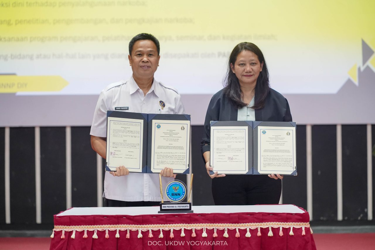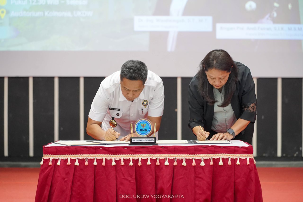 “Kolaborasi dengan BNNP DIY menjadi bagian penting dari UKDW dalam menjaga keberlanjutan. Sesuai tagline UKDW, Sustainable Entrepreneurial Research University, kami berupaya melakukan tindakan pencegahan terkait narkoba yang mengancam keberlanjutan generasi muda,” imbuhnya.