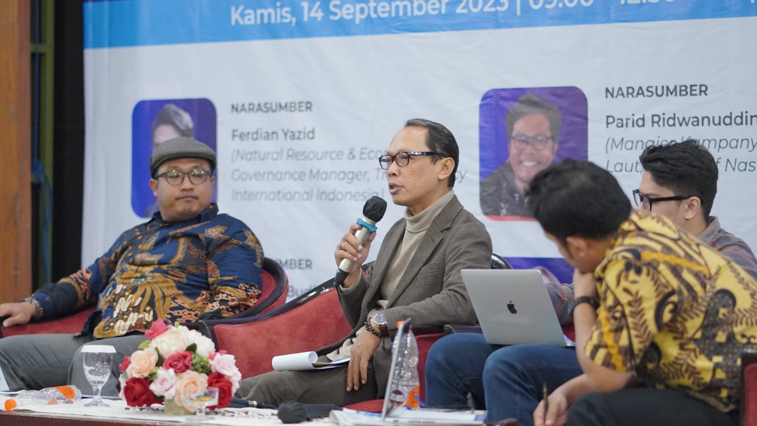 Dimulai penyampaian materi dari Natural Resource & Economic Governance Manager Ferdian Yazid Ferdian, memberikan gambaran fakta lengkap mengenai potensi sumber daya laut di ranah global dan negara Indonesia. Namun potensi tersebut rawan dikorupsi dan beresiko muncul konflik kepentingan dalam kebijakan sektor perikanan. Upaya anti-korupsi menjadi langkah signifikan dalam menyusun kebijakan agar dapat berjalan ke arah berkelanjutan.