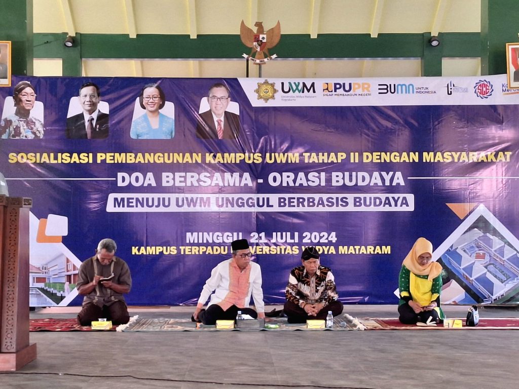Yogyakarta, gugat.id – Pembangunan Kampus Universitas Widya Mataram (UWM) Tahap II dimulai kembali dengan dukungan penuh dari Kementerian PUPR dan Kementerian BUMN. Setelah sukses menyelesaikan pembangunan Tahap I yang meliputi gedung rektorat, pendopo agung, dan beberapa ruang kelas, kini pembangunan dilanjutkan dengan fokus pada perluasan fasilitas pendidikan. Hal tersebut disampaikan oleh Rektor UWM Prof. Dr. Edy Suandi Hamid, M.Ec. saat memberikan sambutan dan orasi kebudayaan dalam acara Sosialisasi Pembangunan Kampus UWM Tahap II dengan Masyarakat di Pendopo Agung Kampus Terpadu UWM pada Minggu (21/07/2024) petang.
