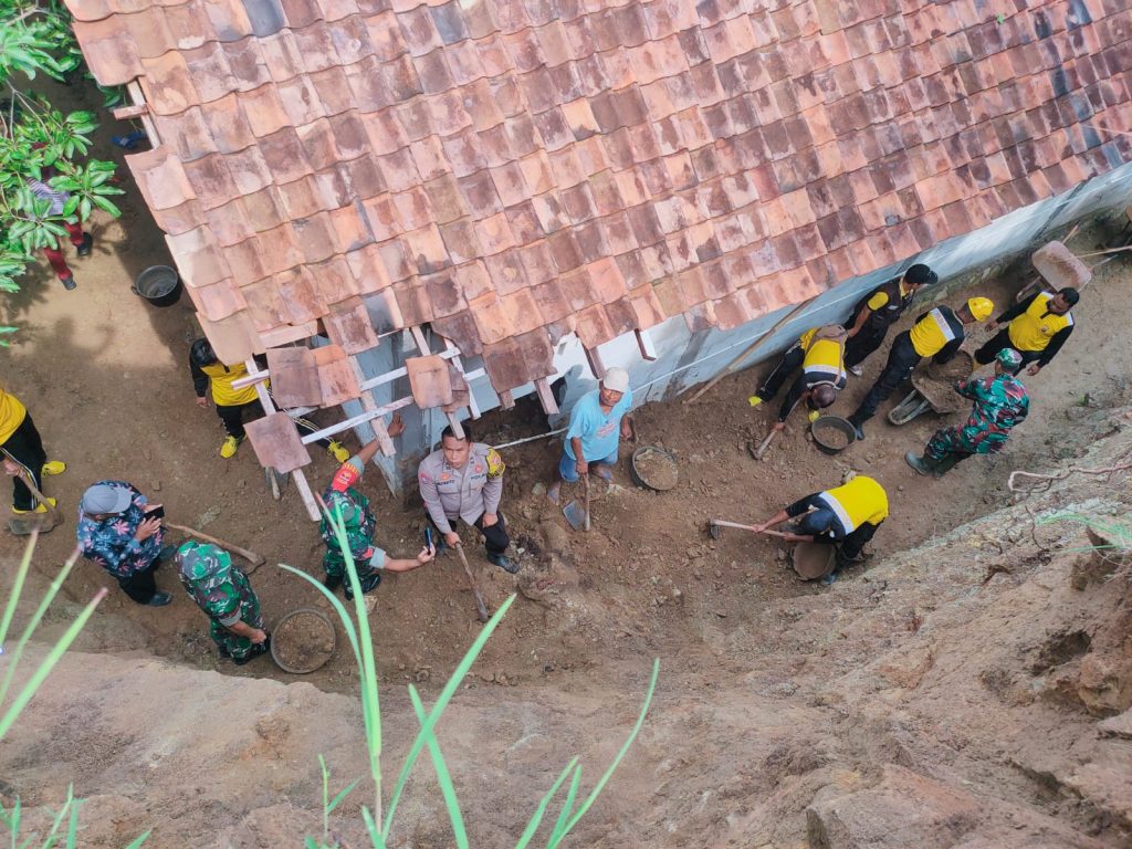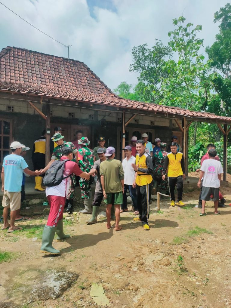 Meski begitu, bagian dapur rumahnya mengalami kerusakan cukup parah, dengan tembok berukuran 2×3 meter jebol akibat tertimpa material longsoran. Kerja bakti yang dimulai pukul 08.15 WIB dipimpin oleh AKP Suryanto, S.Pd., Kapolsek Gedangsari.